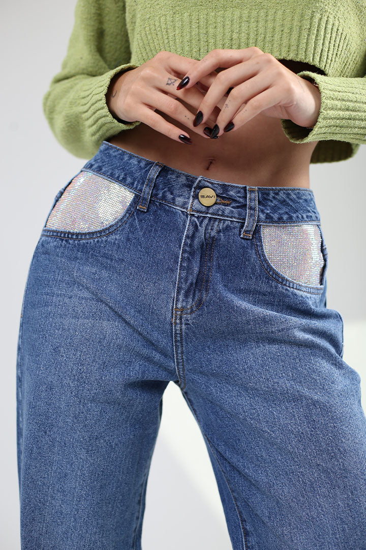 Jeans baggy Recto Tiro Alto Azul Medio SB4157 Mujer