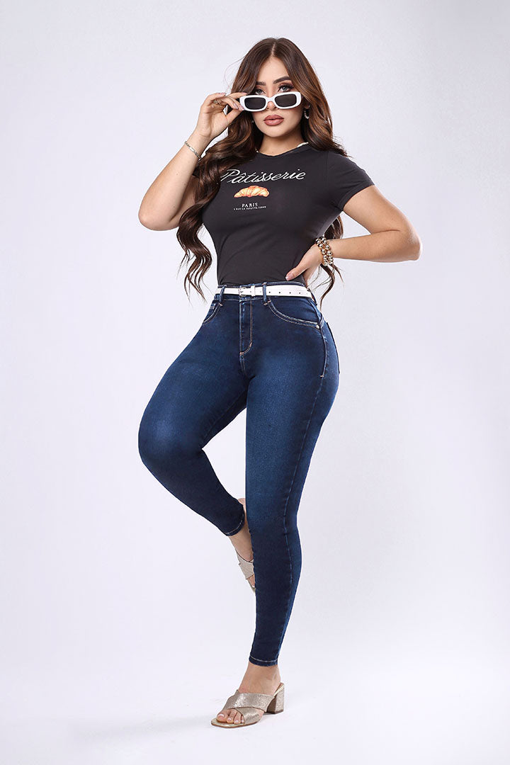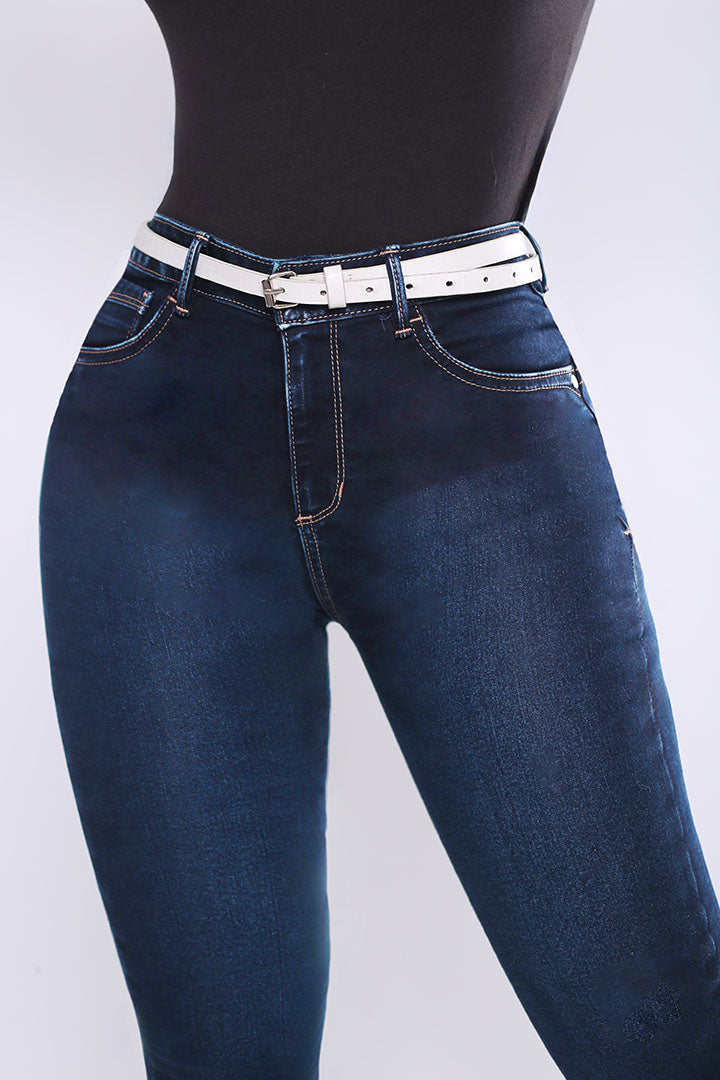 Jeans para mujer modelo SB4737 de corte super skinny que se ajusta al cuerpo y estiliza la figura. De tiro medio para mayor comodidad. En color midnight blue (azul oscuro), ideal para cualquier ocasión. Confeccionados con 60% algodón, 37% poliéster y 3% spandex. Con bolsas traseras, no incluye cinturón. Tallas disponibles: 5, 7, 9, 11, 13 y 15.