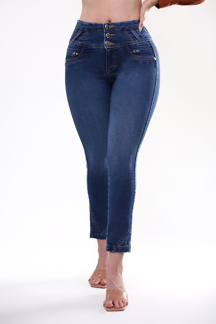 Los jeans tobilleros N4605 de NYK combinan estilo y confort con su diseño de tiro medio. Elaborados con 60% algodón, 37% poliéster y 3% spandex, ofrecen un ajuste perfecto. Disponibles en tallas desde la 3 hasta la 15, son ideales para lograr un look casual y elegante. Incorpora modernidad y versatilidad a tu guardarropa con estos jeans pensados especialmente para ti.