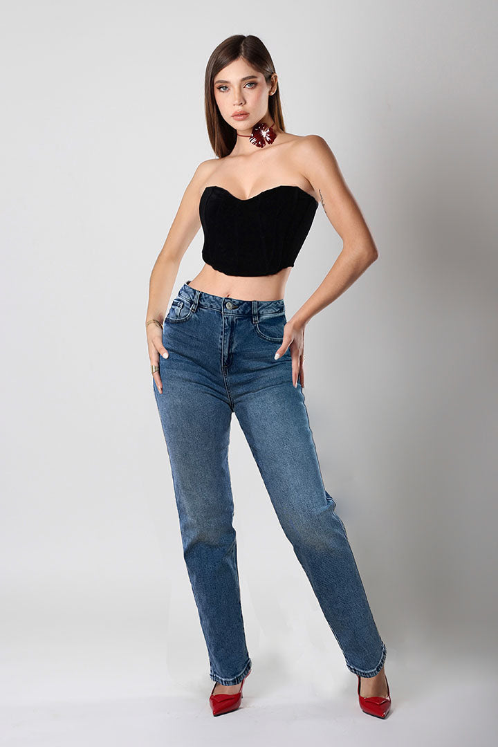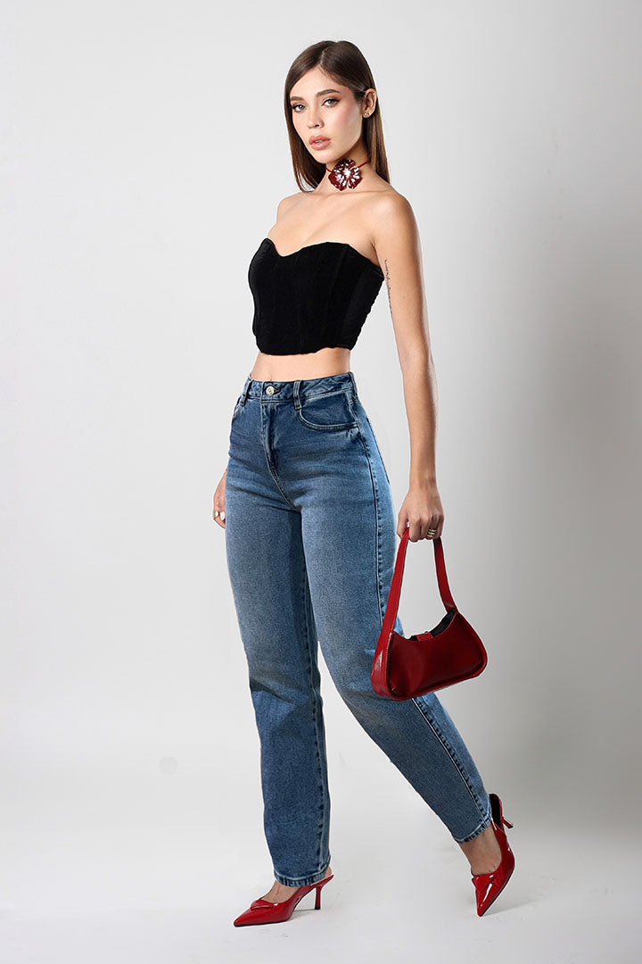 Jeans Mom Mujer Azul Deslavado Tiro Alto SB4574