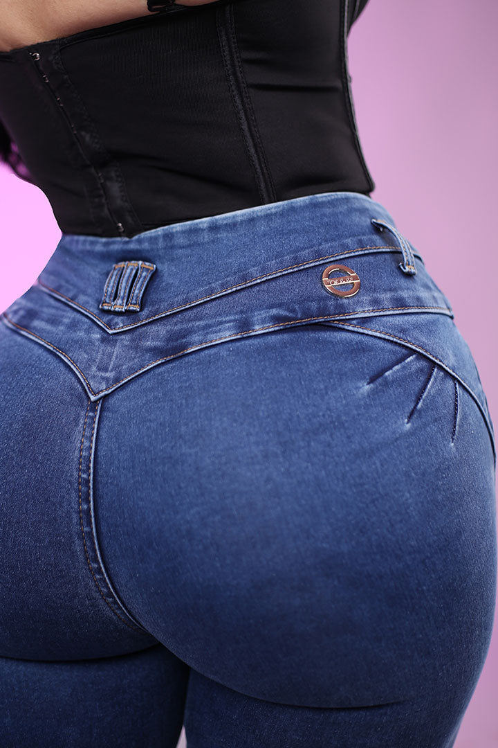 Resalta tu figura con el Jeans Stone Medio NYK N4588, diseñado para moldear y realzar tu silueta con su efecto Push-Up. Su pretina ancha y tiro medio se ajustan perfectamente a la cintura brindando una sensación cómoda y segura.